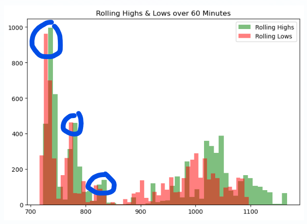 We are simply exploiting the effect where market highs and lows tend to occur at similar prices.