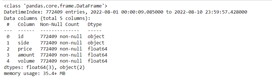 df.to_parquet(f'Data/Crypto/{ticker}.parquet', index=False)Our first method uses trade data from Tardis to find the cumulative volume at each specific price instead of just taking bars (more accurate). We will not show how this is collected, but this can be learned from the website “tardis.dev”.