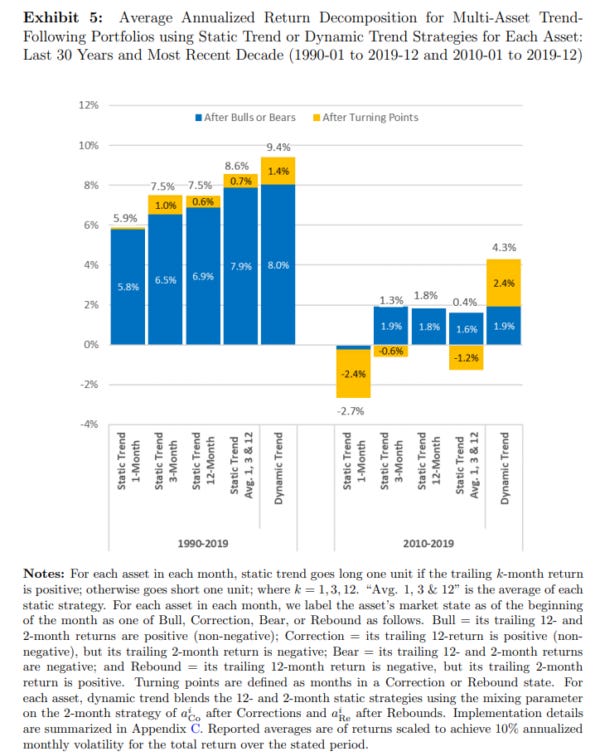 Many papers will only use the last 10 years for their momentum study, but that is very misleading. Not including 2008 as well as other momentum crashes is an easy way to make a strategy look a lot better than it really is by fitting to the current regime.