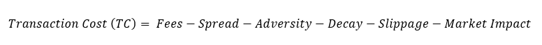 Finally, slippage is the difference between the price you see and the price you get. This is best thought of as latency cost / being too slow to catch the trade. You may also see this if you are getting frontrunned (some exchanges in crypto, even major ones, do this) where you hit non-existent levels. This is another one that applies mostly to HFT / MFT execution problems. Not every alpha competes on latency and if slippage is a make-or-break component then you probably aren’t getting your edge from the alpha, the edge is in the latency. Think about whether this is worth competing on, “What is the cost-benefit to optimization?”, and if not move on.