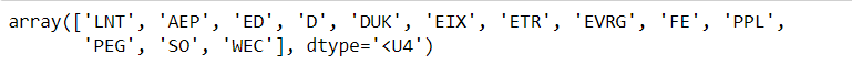 To form our portfolios we should select the optimal assets ahead of time. Otherwise, we will not be likely to generate a robust portfolio. In our case, we use the below list of tickers in the electrical utility category. This is an area that can be expanded upon greatly by looking at other categories/themes or even by applying clustering algorithms to form your portfolios.