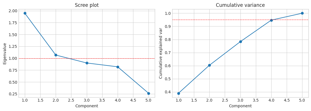 The alphas are fairly uncorrelated and orthogonal (not perfectly, but still very good for all being from the same dataset type) as seen in the scree plot below:
