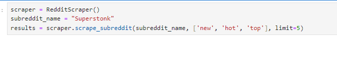results[post_type] = self.scrape_posts(subreddit_name, post_type, limit)