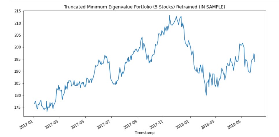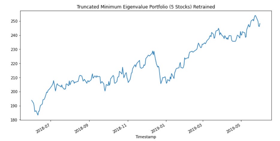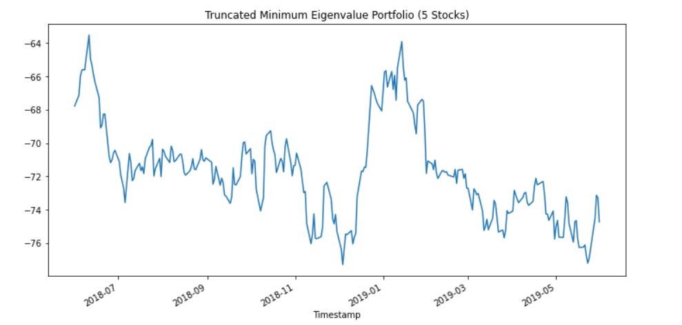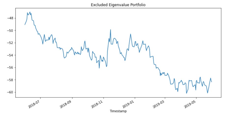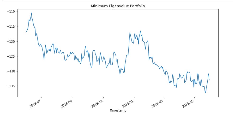 eigvals, wgts = portmanteau_gep(df_train, 10)This is the same method we coded up last article, and when we plotted our minimum eigenvalue portfolio we returned this: