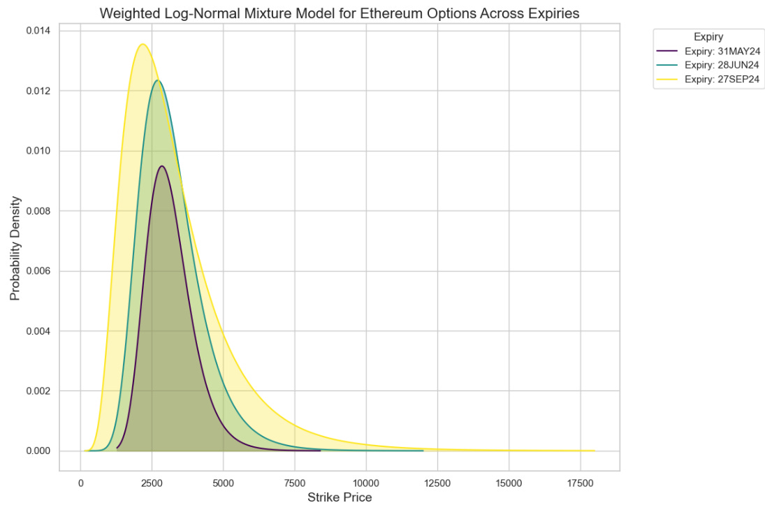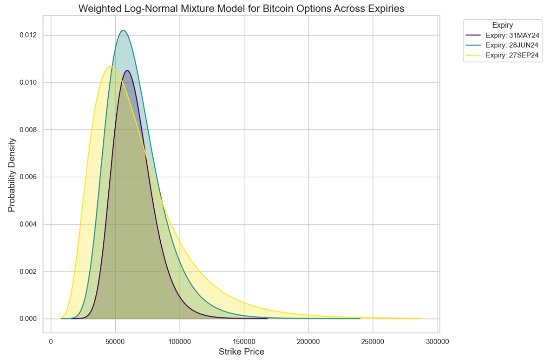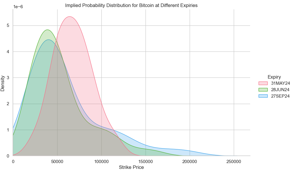 When I first thought about this topic, my immediate thought was to look at using the d2 of the options and use that to fit a surface to the probabilities of each. For readers unfamiliar with some of the math:
